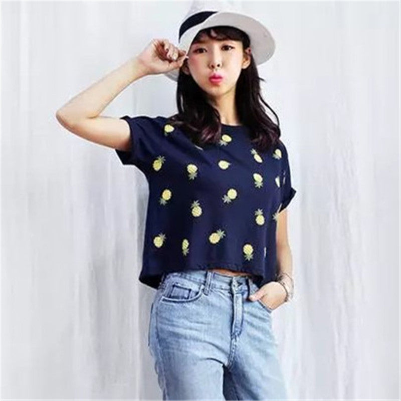 New Fashion Women clothing Short T shirts Pineapple Print t-shirt Women Top Short Sleeve Female Fruit tops 71678 SM6