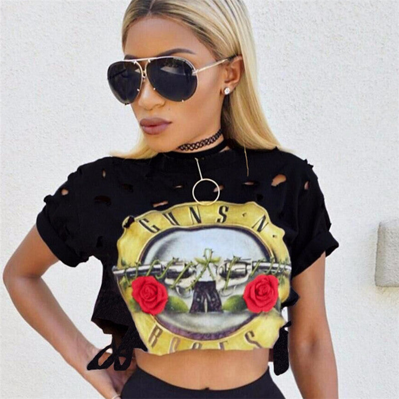 New Fashion Women clothing T shirts Hollow Out Letter Print t-shirt Women Top Short Sleeve Female Crop tops 71623 SM6