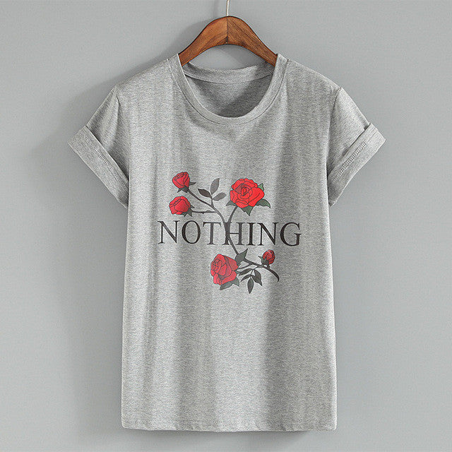 New Fashion Women Summer T shirts Female Nothing Letter Rose Floral Print t-shirt Short Sleeve Plus Size Woman tops 32785 SM6